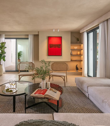 This suite comprises 1 living room, 1 bedroom and 1 bathroom with separate toilet and shower. The air-conditioned suite provides a flat-screen TV, soundproof walls, and all of the suites have their own space to sunbed in privacy, either a garden or a terrace.